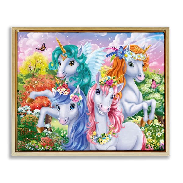 Cute Unicorn Selfie by Image World Gold Floater Frame Fantasy Graphic Art Print 17 in. x 21 in.