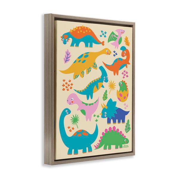 Cute Whimsy Dinos by Carrie Cantwell Brown Floater Frame Animal Graphic Art Print 21 in. x 17 in.