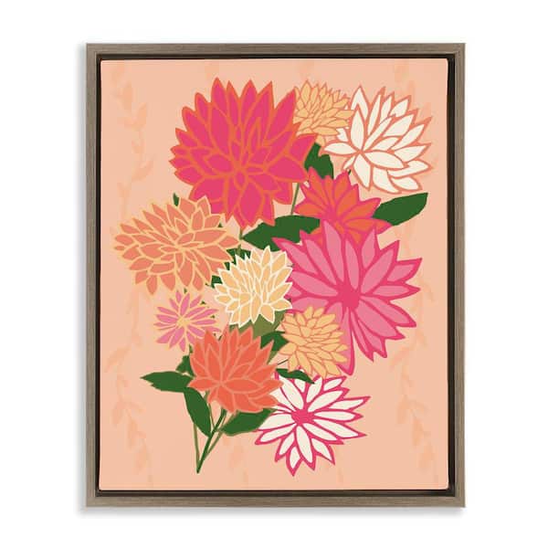 Dahlia Petal Outlines by Michelle Ingari Designs Brown Floater Frame Nature Graphic Art Print 21 in. x 17 in.