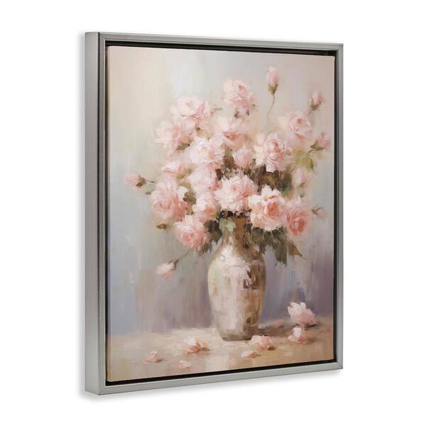 Dainty Pink Rose Vase by Arlington Prints Gray Floater Frame Nature Graphic Art Print 21 in. x 17 in.