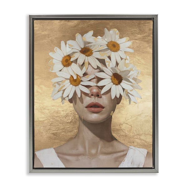 Daisy Adorned Woman by Svetlana Aleynikova Gray Floater Frame People Graphic Art Print 31 in. x 25 in.