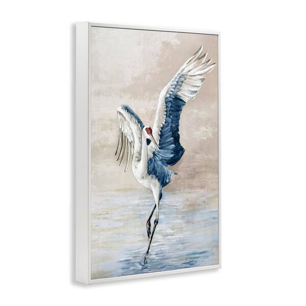 Dancing Crane on Shore by Eli Jones White Framed Animal Giclee Art Print 24 in. x 16 in.