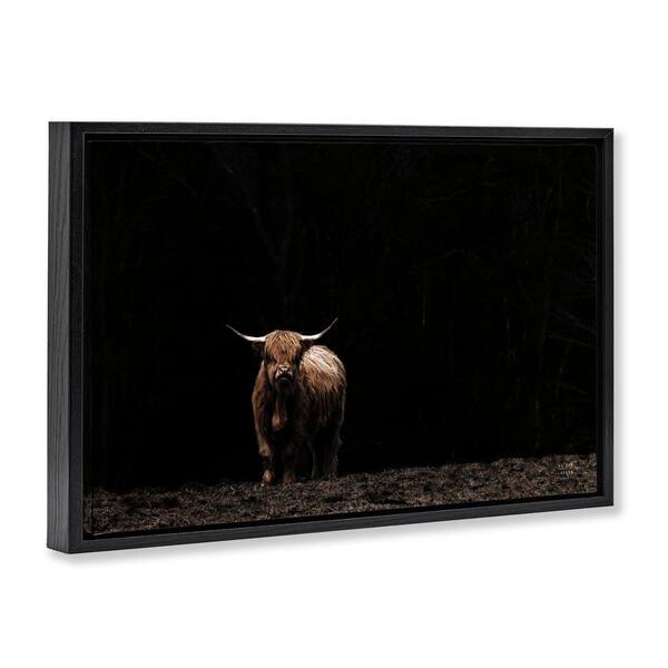 Dark Contrast Highland Cow by Nathan Larson Black Floater Frame Animal Graphic Art Print 17 in. x 25 in.
