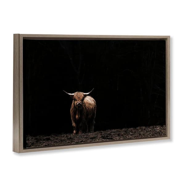 Dark Contrast Highland Cow by Nathan Larson Brown Floater Frame Animal Graphic Art Print 21 in. x 31 in.