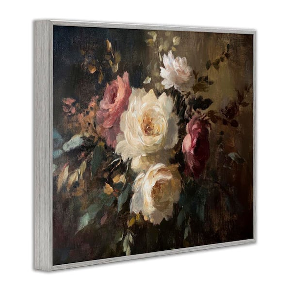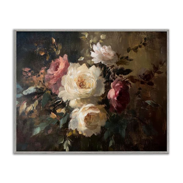 Dark Still Life Roses by Petal Prints Design Gray Framed Nature Giclee Art Print 11 in. x 14 in.