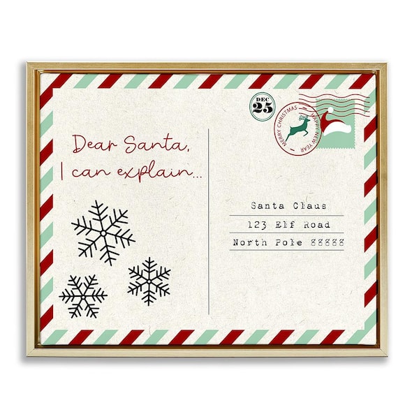 Dear Santa Postcard by Lil' Rue 1-Piece Floater Frame Graphic Print Typography Poster Art Print 31 in. x 25 in.