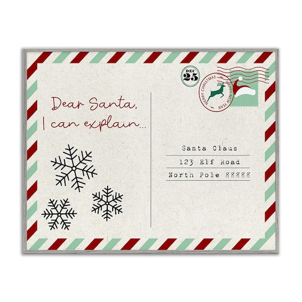 Dear Santa Postcard by Lil' Rue 1-Piece Framed Graphic Print Typography Poster Art Print 30 in. x 24 in.