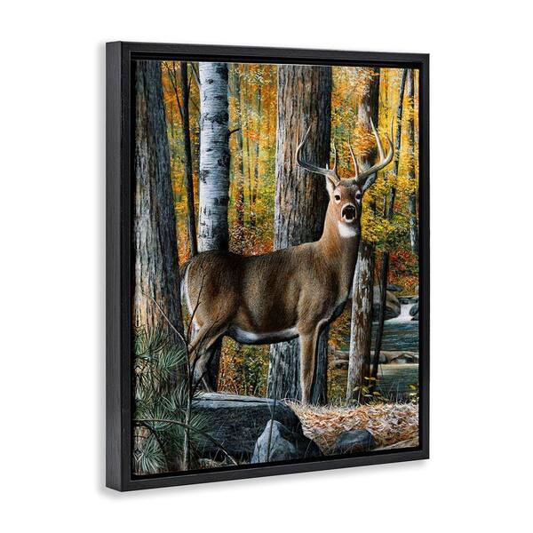 Deer Among Autumn Foliage by Kevin Daniel Black Floater Frame Graphic Animal Art Print 31 in. x 25 in.