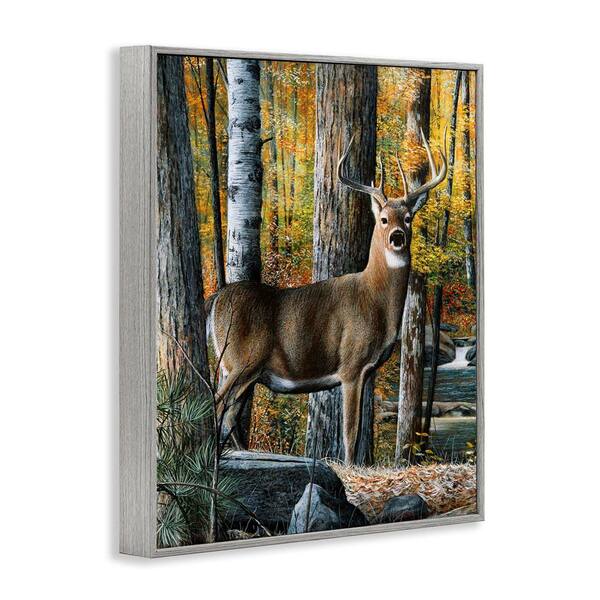 Deer Among Autumn Foliage by Kevin Daniel Gray Framed Graphic Animal Art Print 16 in. x 20 in.
