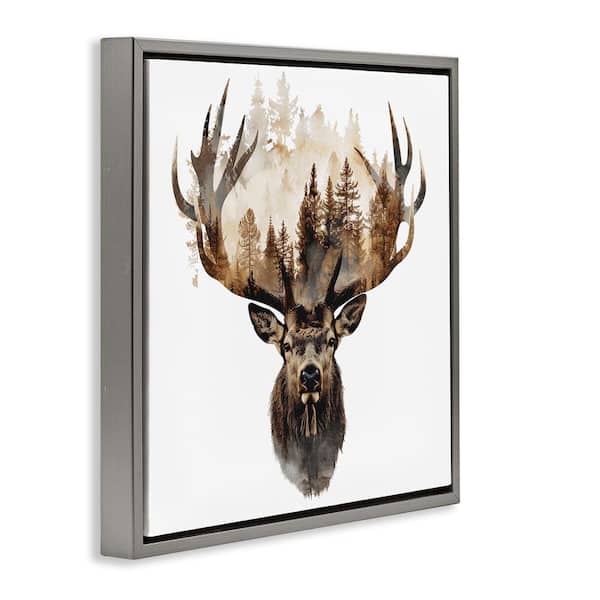 Deer Forest Silhouette by LSR Design Studio Gray Floater Frame Animal Graphic Art Print 25 in. x 25 in.