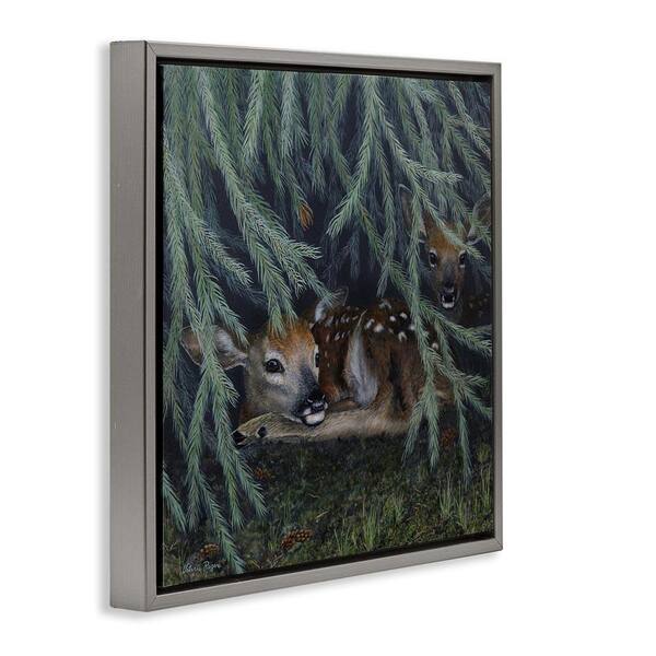 Deer Under Forest Tree by Valerie Rogers Gray Floater Frame Animal Graphic Art Print 25 in. x 25 in.