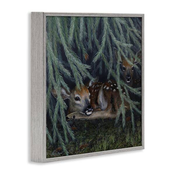Deer Under Forest Tree by Valerie Rogers Gray Framed Animal Giclee Art Print 17 in. x 17 in.