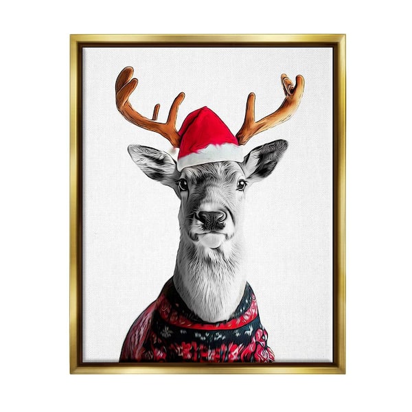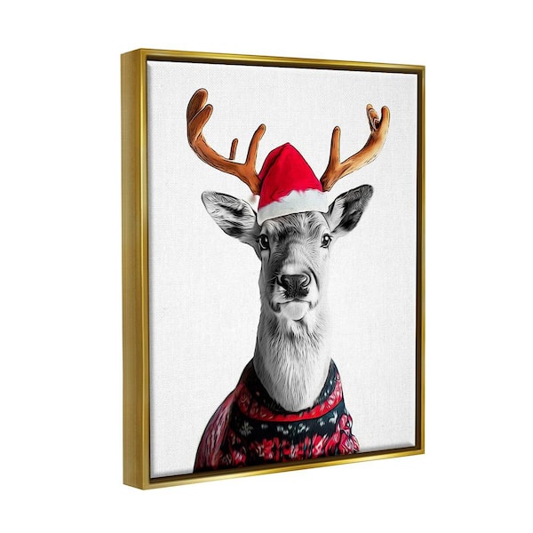 Deer in Holiday Sweater by Annalisa Latella 1-Piece Floater Frame Graphic Print Animal Poster Art Print 21 in. x 17 in.
