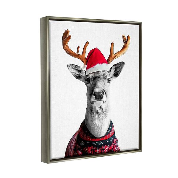 Deer in Holiday Sweater by Annalisa Latella 1-Piece Floater Frame Graphic Print Animal Poster Art Print 21 in. x 17 in.