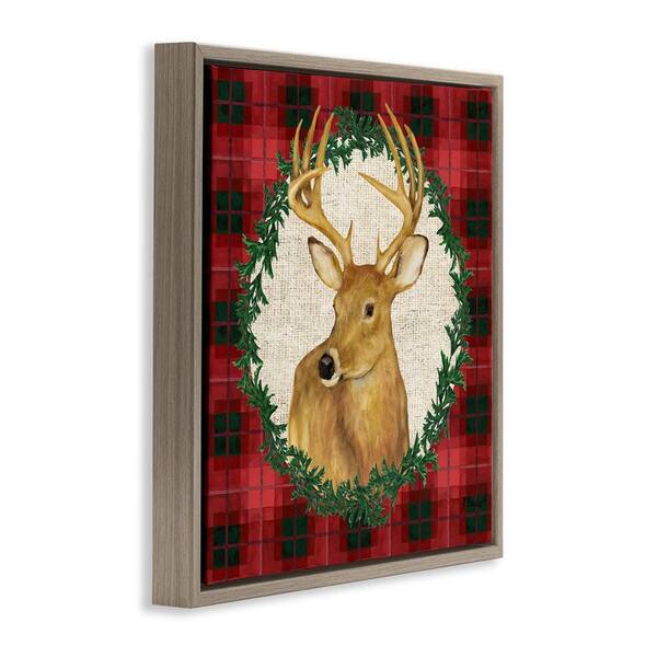 Deer on Plaid & Wreath by Paul Brent Brown Floater Frame Animal Graphic Art Print 18 in. x 18 in.