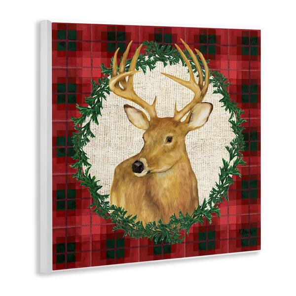 Deer on Plaid and Wreath by Paul Brent Unframed Animal Graphic Art Print 12 in. x 12 in.