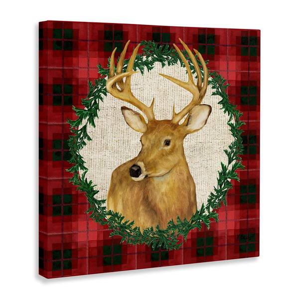 Deer on Plaid and Wreath by Paul Brent Unframed Animal Graphic Art Print 36 in. x 36 in.