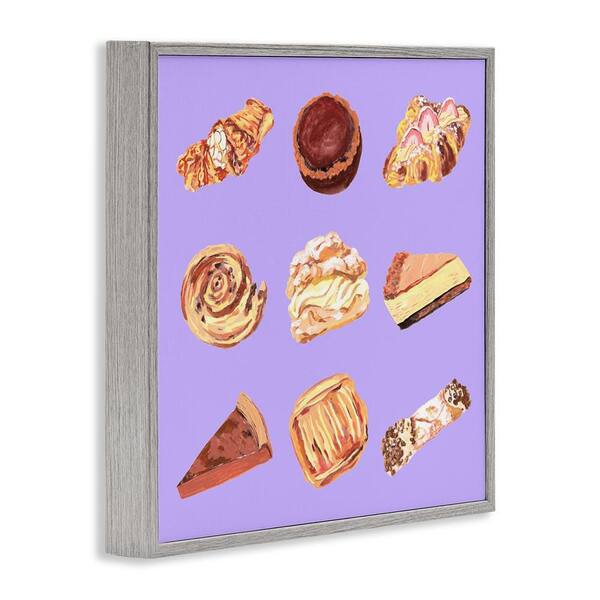 Delicious Pastries on Purple by Melissa Wang Gray Framed Food Giclee Art Print 12 in. x 12 in.
