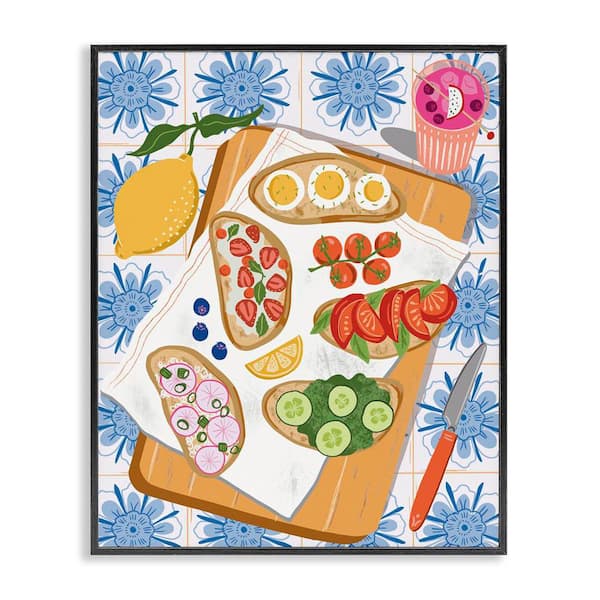 Delicious Toasts on Florals by Jo Reid Black Framed Food Giclee Art Print 30 in. x 24 in.