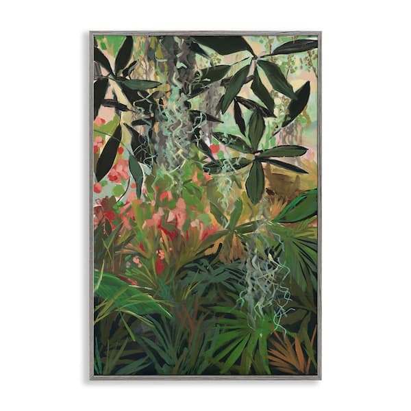 Dense Rain Forest Plants by Jenny Westenhofer Gray Framed Nature Giclee Art Print 24 in. x 16 in.