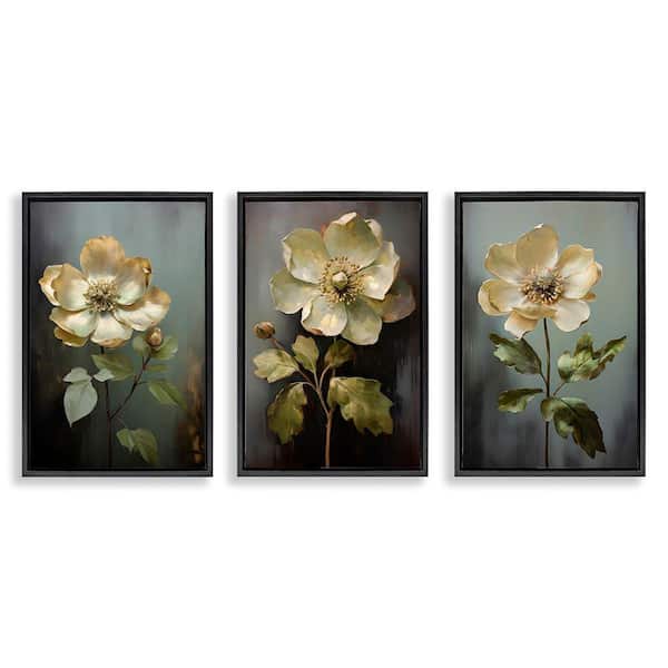 Detailed Magnolia Flowers by Petal Prints Design 3 Pieces Black Floater Frame Nature Graphic Art Print 25 in. x 17 in.