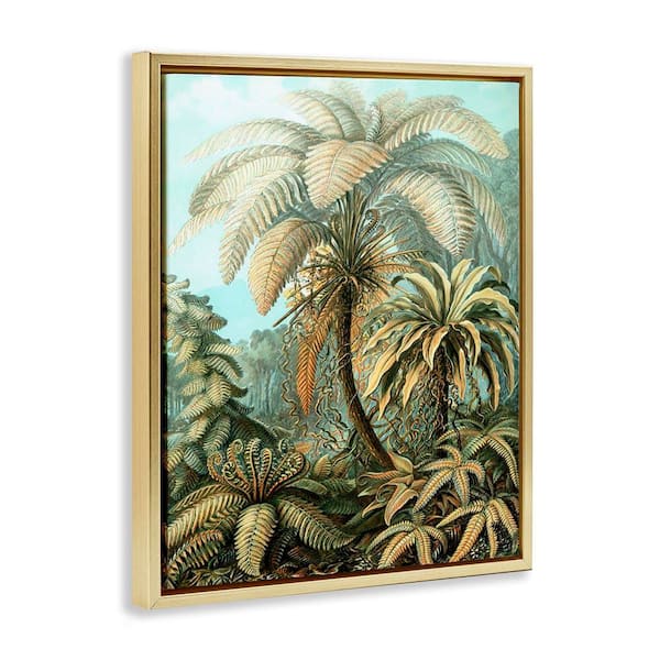 Detailed Palm Tree Leaves by Graffi tee Studios Gold Floater Frame Nature Graphic Art Print 21 in. x 17 in.