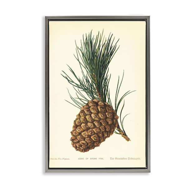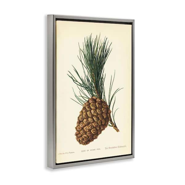 Detailed Pine Cone Sprig by Tina Higgins Designs, Inc. Gray Floater Frame Nature Graphic Art Print 25 in. x 17 in.