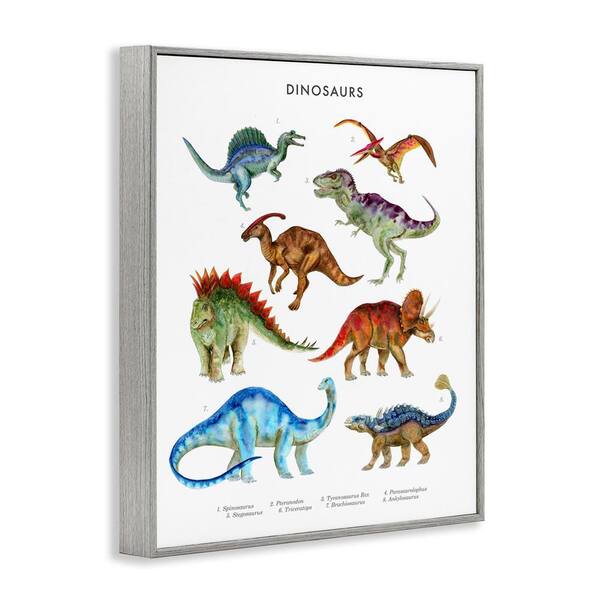 Dinosaur Learning Chart by Brett Blumenthal Gray Framed Animal Giclee Art Print 14 in. x 11 in.