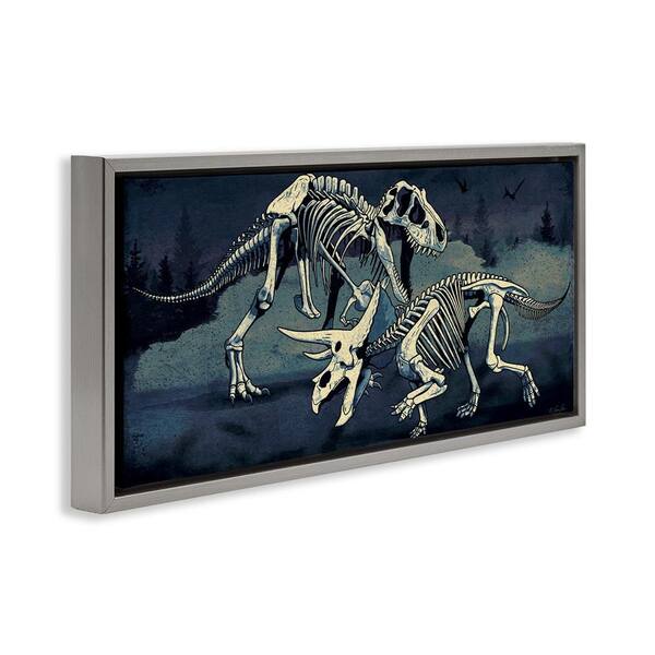 Dinosaur Skeletons Duo by Lauren Rader Gray Floater Frame Animal Graphic Art Print 11 in. x 25 in.