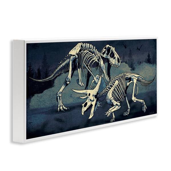 Dinosaur Skeletons Duo by Lauren Rader White Framed Animal Giclee Art Print 10 in. x 24 in.