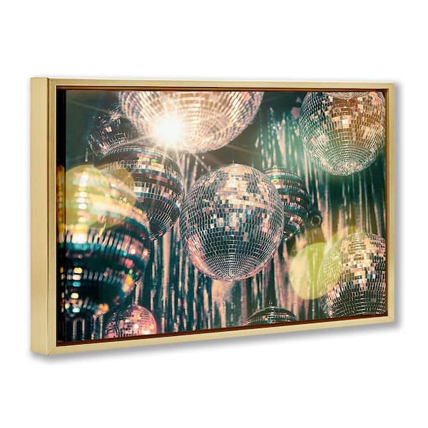 Disco Balls with Bokeh by Graffi*tee Studios Gold Floater Frame Music Graphic Art Print 21 in. x 31 in.