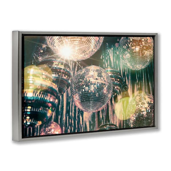 Disco Balls with Bokeh by Graffi*tee Studios Gray Floater Frame Music Graphic Art Print 21 in. x 31 in.
