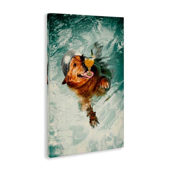 Disco Dog in Pool by Graffi tee Studios Unframed Animal Graphic Art Print 24 in. x 16 in.