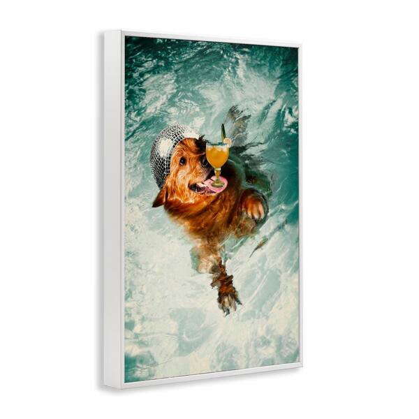 Disco Dog in Pool by Graffi*tee Studios White Framed Animal Giclee Art Print 30 in. x 20 in.