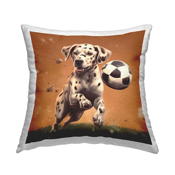Dog Playing Soccer Outdoor Printed Throw Pillow by Lazar Studio