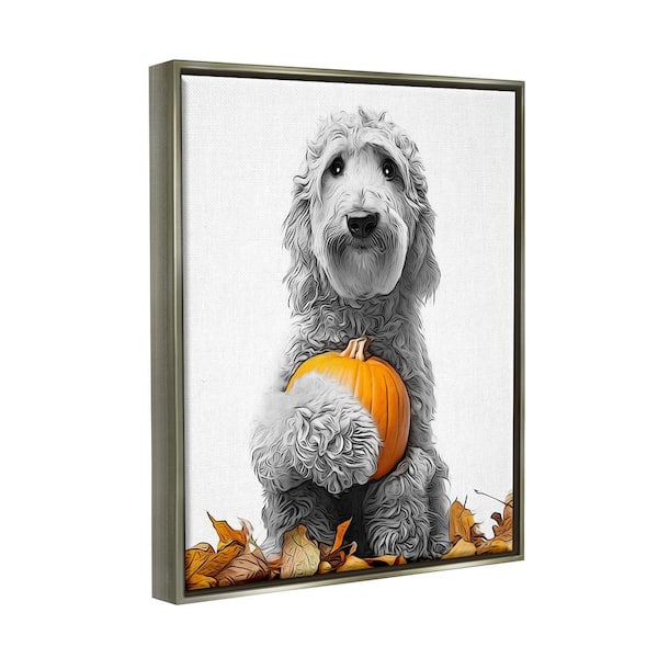 Dog and Autumn Leaves by Annalisa Latella 1-Piece Floater Frame Graphic Print Animal Poster Art Print 21 in. x 17 in.
