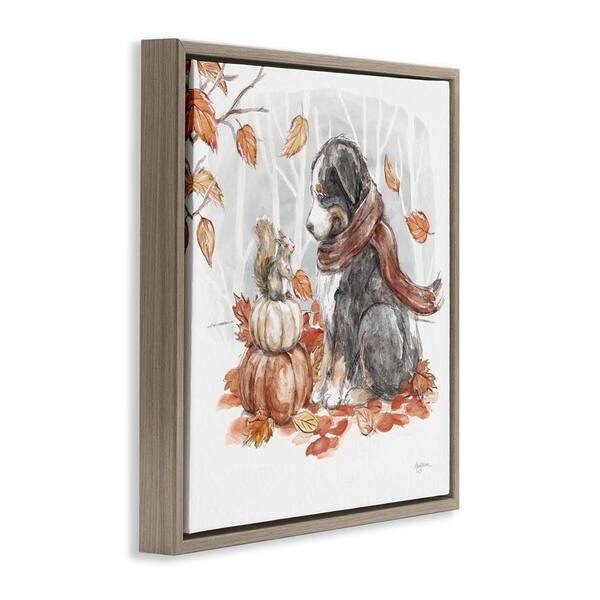 Dog and Fall Pumpkins by Mary Urban Brown Floater Frame Graphic Typography Art Print 25 in. x 25 in.
