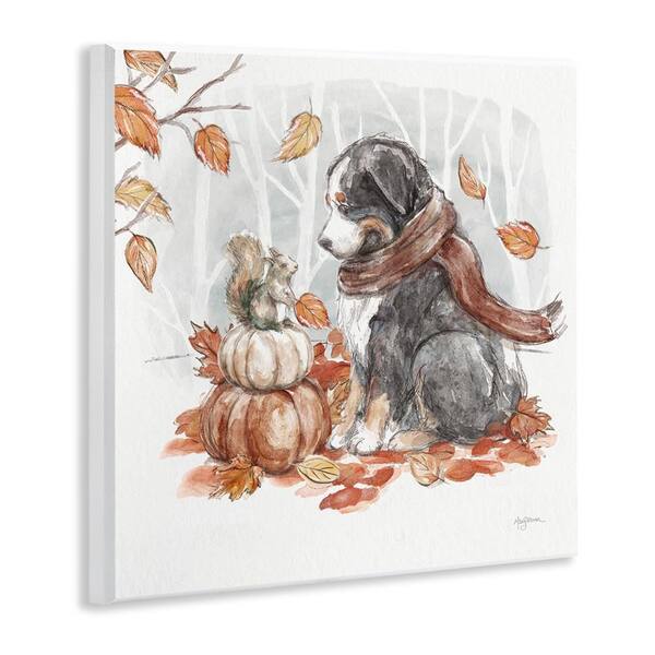 Dog and Fall Pumpkins by Mary Urban Unframed Graphic Typography Art Print 12 in. x 12 in.