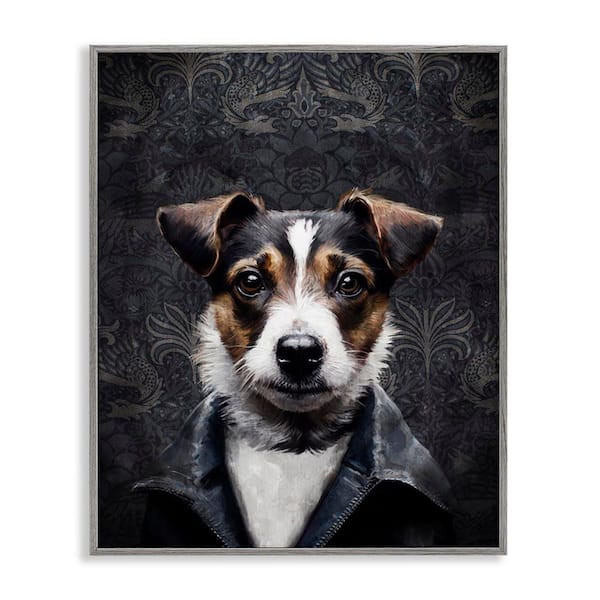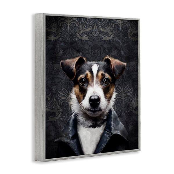 Dog with Ornate Background by Svetlana Aleynikova Gray Framed Animal Giclee Art Print 30 in. x 24 in.