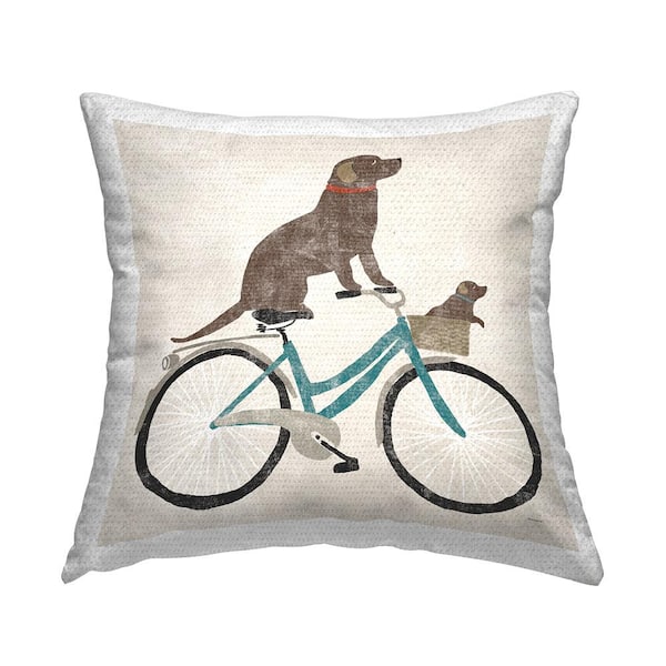 Dogs Riding Blue Bicycle Brown Square Outdoor Throw Pillow