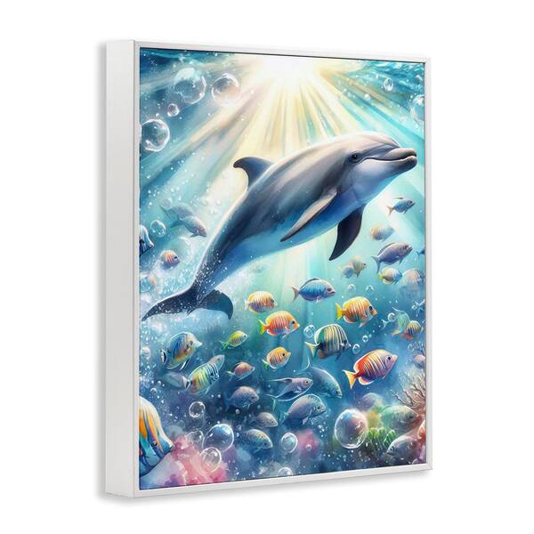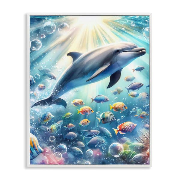 Dolphin Among Sea Life by LSR Design Studio White Framed Coastal Giclee Art Print 30 in. x 24 in.
