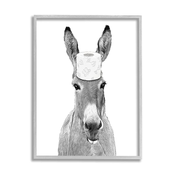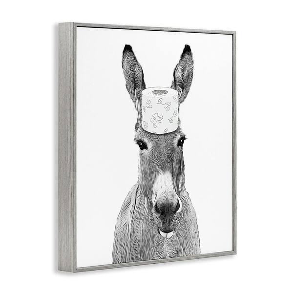 Donkey Toilet Paper Funny Bathroom by Annalisa Latella 1-Piece Gray Framed Abstract Giclee Art Print 16 in. x 20 in.