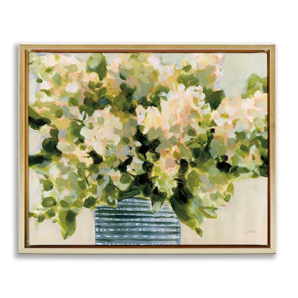Dotted Hydrangeas Vase by Katrina Pete Gold Floater Frame Nature Graphic Art Print 17 in. x 21 in.