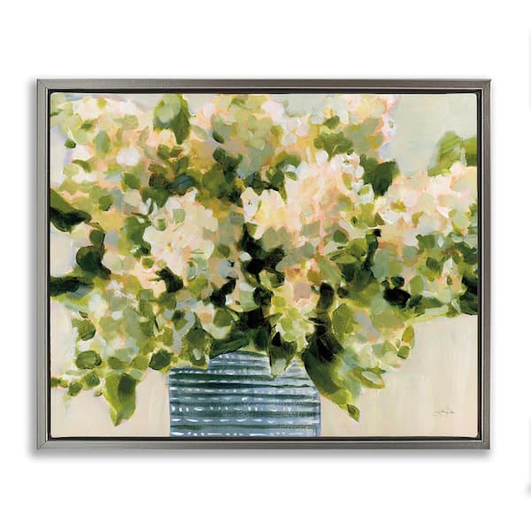 Dotted Hydrangeas Vase by Katrina Pete Gray Floater Frame Nature Graphic Art Print 25 in. x 31 in.