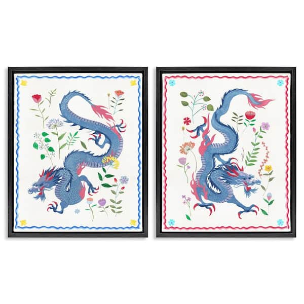 Dragons with Flower Details by Melissa Wang 2 Pieces Black Floater Frame Fantasy Graphic Art Print 31 in. x 25 in.