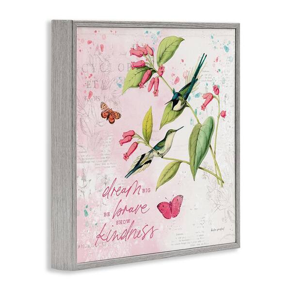 Dream Big Birds & Florals by Katie Pertiet Gray Framed Animal Giclee Art Print 17 in. x 17 in.