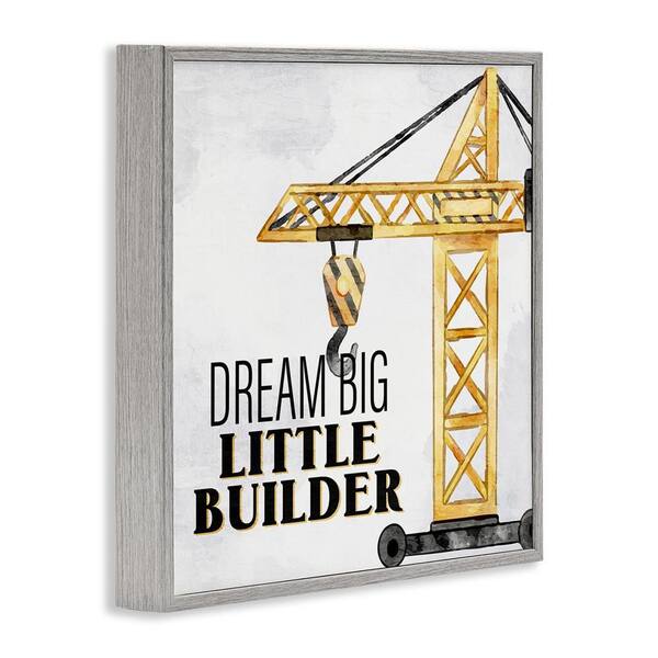 Dream Big Little Builder by Kim Allen Gray Framed Typography Giclee Art Print 12 in. x 12 in.