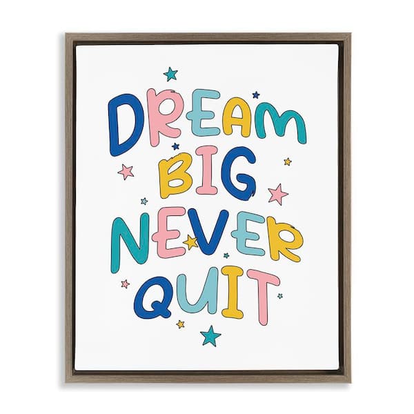Dream Big Never Quit by Ahmed Sameh Hussein Brown Floater Frame Typography Graphic Art Print 31 in. x 25 in.