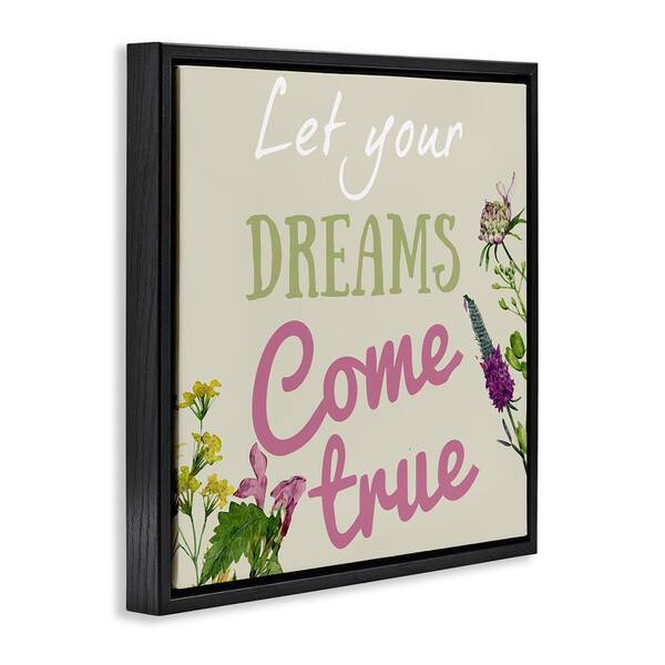 Dreams Come True with Florals by Kim Allen Black Floater Frame Typography Graphic Art Print 18 in. x 18 in.