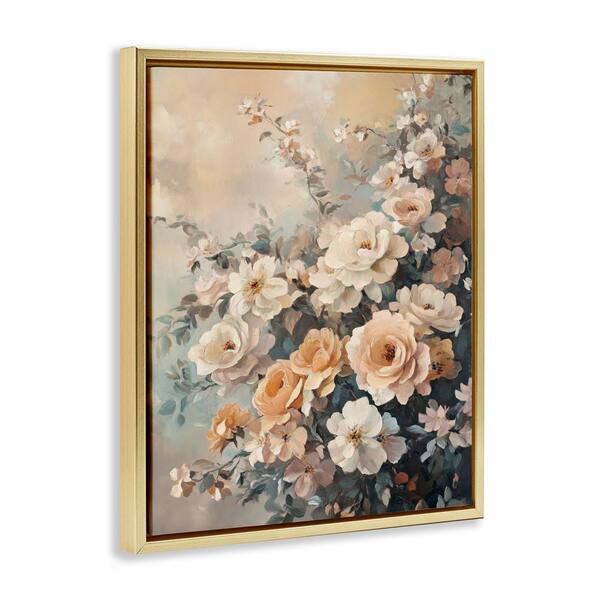 Dreamy Rosy Florals by Petal Prints Design Gold Floater Frame Nature Graphic Art Print 31 in. x 25 in.